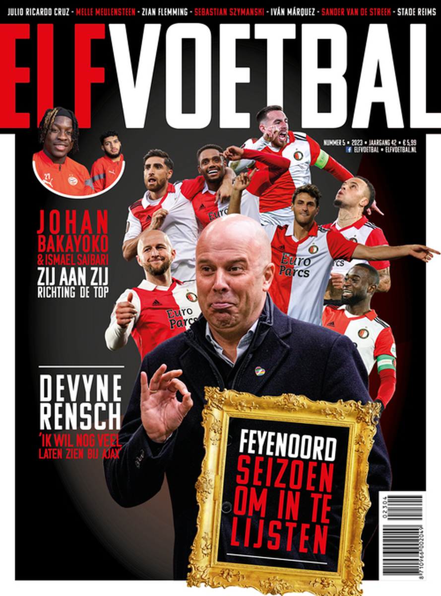 Een seizoen om in te lijsten. Deze beschrijving slaat volledig op Feyenoord. De cover van de nieuwe ELF Voetbal, nummer 5, besteedt volop aandacht aan de aanstaande landskampioen. Onder meer met een uitgebreid interview met Sebastian Szymanski. Daarnaast in onze nieuwe editie vraaggesprekken met Ajax-rechtsback Devyne Rensch, met PSV-talenten Johan Bakayoko en Ismael Saibari en een reportage bij Stade de Reims waar drie Nederlanders een grote stempel drukken op het succes alsmede een unieke serie van de Franse subtopper.