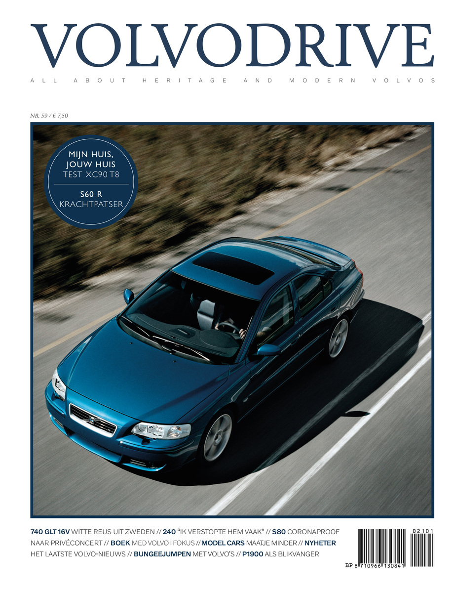 Voor editie 59 reden we met de XC90 T8 Recharge Plug-in Hybrid AWD, maakten we kennis met krachtpatser de S60 R en haalde René-Paul Dijkstra een witte reus op in Zweden. Aart van der Haagen tekende het verhaal op van Kees Karman met zijn 240 Base, die hij een kwart eeuw geleden in zijn studententijd kocht. Dat biedt gegarandeerd leesplezier, dus geniet ervan tijdens deze lockdown.
